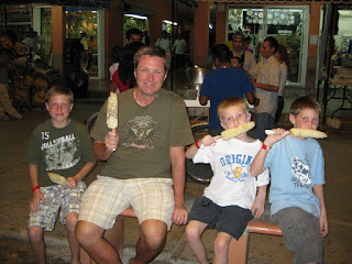 I have to admit, it's really fun to watch this whole process. I mean, seeing an empty lot turn into something we've only seen on paper and in our imaginations is pretty cool. The boys run through the house envisioning where their rooms will be saying things like, "I'm the first one in this room!" After one particularly muddy visit to the new house, Ben cleaned off all of our shoes at the kitchen sink. The small rocks and mud that went down the drain broke the disposal. $125 for a new one. Sweet.
