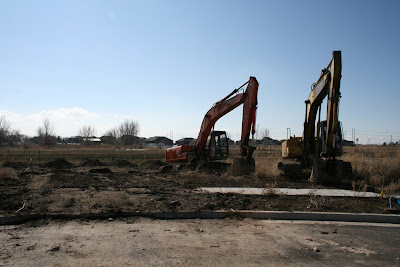 There it is. Our new home. Beautiful, right? No, not the tractors ... the land! This photo was taken a couple of weeks ago. Since then, there has been much digging, filling, and pouring going on. Here are some pictures of the progress: