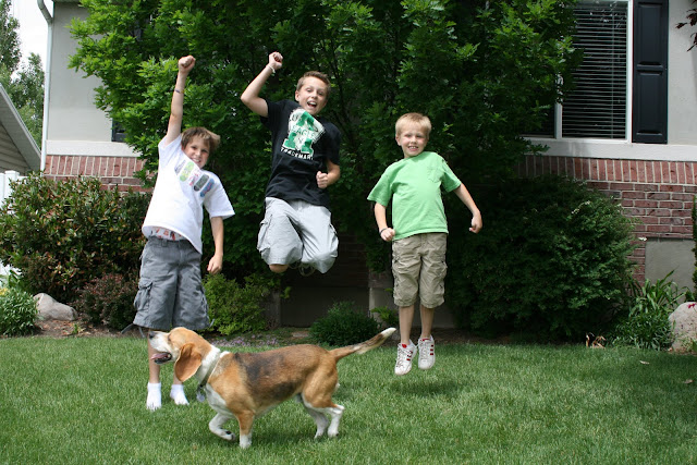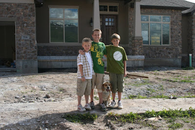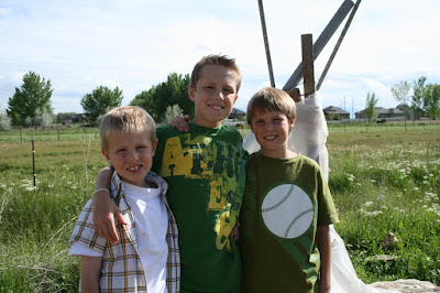 We spend a lot of time at the new house watching the construction (or, you might say, inspecting every single detail of what was done that day and therefore driving the workers crazy), so the boys have been working on a little construction project of their own. They've had a ball building a teepee and a hut in the backyard. They scavenge all over the development to find scraps of wood, nails and tools. (I don't know whose hammer they swiped!) I think they may have a future in construction, because these little beauties have been there for a few weeks and they haven't fallen apart yet!