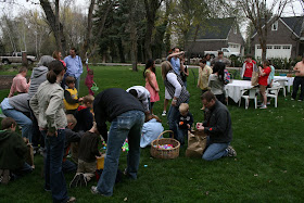 We love going to the annual easter egg hunt at the Thomases. The weather was a little chilly this year, but at least we didn't get rained on ... which is a miracle this spring! As usual, there were lots of hidden eggs filled with candy or (even better) money, plus a yummy bbq and great friends.