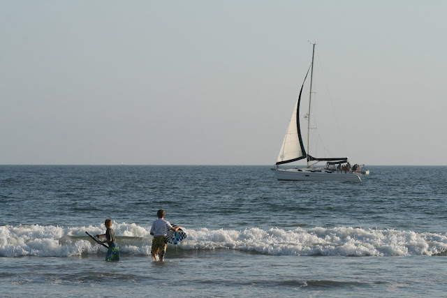 ... before heading back over to Coronado for more smashball and boogie-boarding. While we played on the beach, my mom and dad opted to relax on a bench and read: