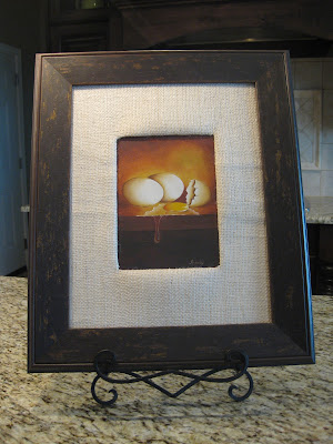 Also working on a few framing projects to be hung around the house. I'm most excited about this one ...My mom painted this cute picture years ago and I'm re-framing it in this new frame with a burlap covered mat. I'm having a little trouble getting the burlap to attach to the mat (note the air bubbles), but not to worry, I went and bought some new adhesive spray yesterday. I'll give it a whirl and hopefully this will be hanging in my kitchen before the weekend is over.